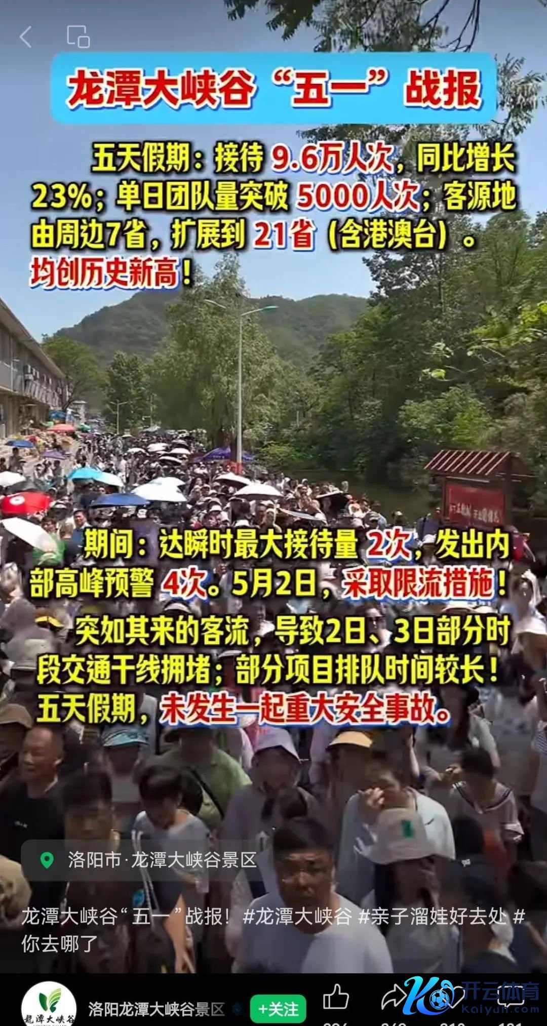 极目新闻记者把稳到,景区微信公众号发布的信息走漏,刚刚昔日这个五一假期,该景区旅客爆满,共欢迎旅客9.6万东谈主次,同比增长23%。5月2日还发布了限流公告:因景区已达最大承载量,不再售卖当日门票。
