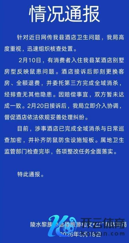官方通报示意,酒店和破钞者之间就抵偿问题莫得完满一致,文旅部门正督促酒店妥善处理纠纷,卫生监管部门已督促酒店整改到位。