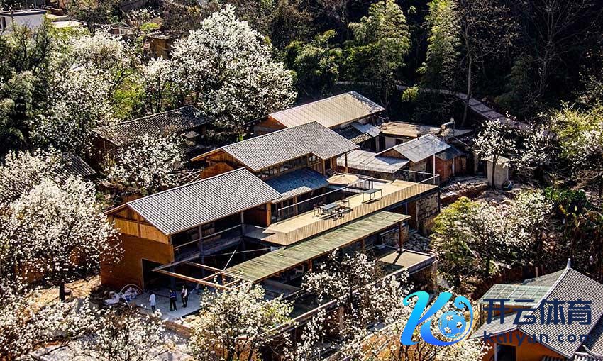 航拍个旧市哨冲村敞开的梨花。个旧市文旅局供图