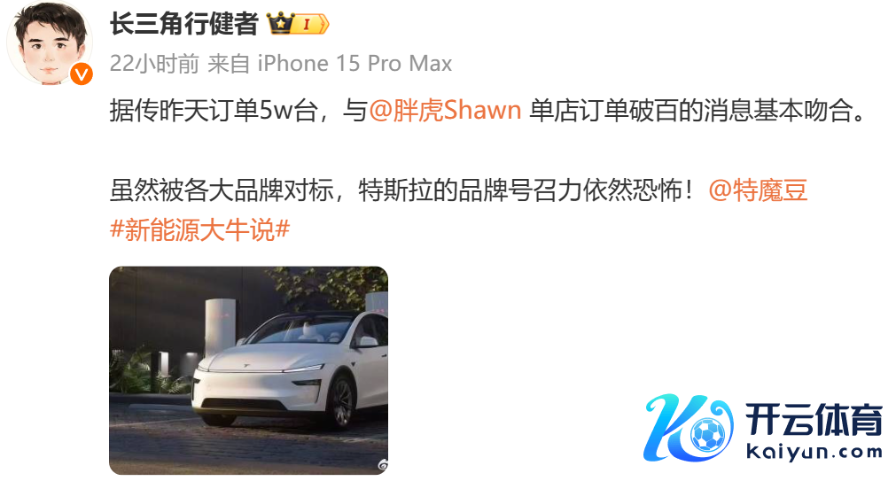 【CNMO科技音信】1月10日,特斯拉新款Model Y一忽儿官宣上市开yun体育网,让总共这个词车圈齐淆乱了起来。包括小米、极氪、鸿蒙智行等诸多厂商也齐对此进行回话。近日有博主爆料称,诚然网上好多网友关于新Model Y齐不太看好,然则其预售销量发扬却依旧特别炸裂。