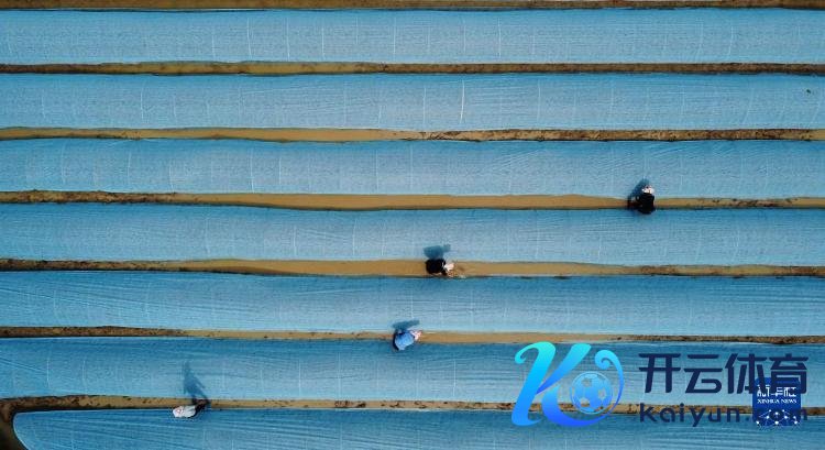 4月26日,村民在贵州省黔东南苗族侗族自治州台江县台盘乡阳芳村水稻育秧基地管护水稻秧苗(无东说念主机像片)。