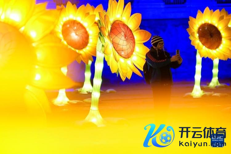 2月10日,又名须眉在比利时布鲁塞尔观赏一处灯光艺术作品。