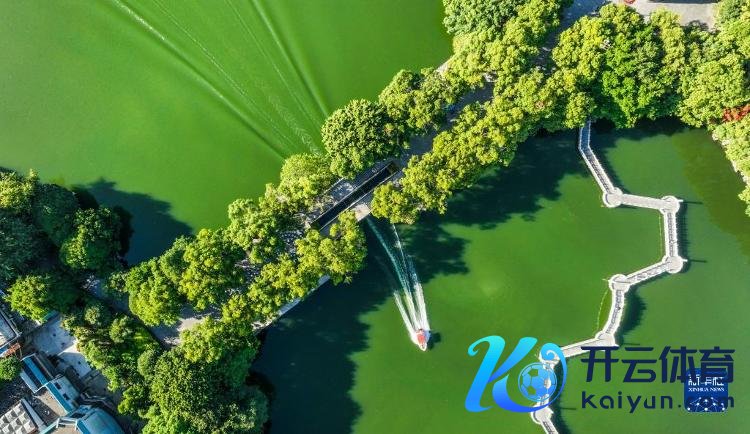 10月3日,搭客乘船游览广西桂林市桂湖(无东说念主机像片)。