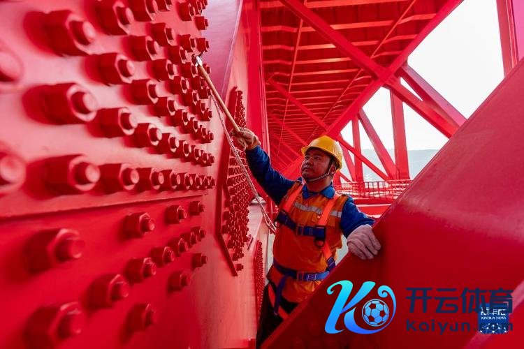 1月18日,昆明铁路局普洱基础要津段工务维修本事中心的桥隧工施鹏彬在查验中老铁路为止性工程元江双线特大桥螺丝松紧情况。
