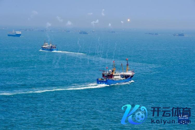 8月16日,福建省福州市连江县苔菉中心渔港开渔出海的渔船在海面飞翔。
