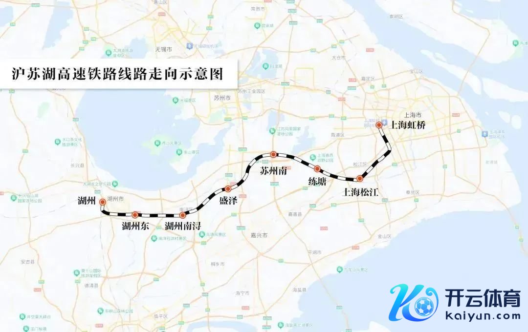 沪苏湖高铁自上海市上海虹桥站引出,路过江苏省苏州市,终至浙江省湖州市湖州站,清亮全长164公里,绸缪时速350公里,设上海虹桥、上海松江、练塘、苏州南、盛泽、湖州南浔、湖州东、湖州站等8座车站,其中上海虹桥、湖州站为既有车站,其余为新建车站。