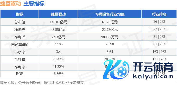 捷昌启动2024年三季报显现,公司主营收入25.68亿元,同比上升22.2%;归母净利润2.93亿元,同比上升55.6%;扣非净利润2.6亿元,同比上升56.72%;其中2024年第三季度,公司单季度主营收入9.92亿元,同比上升24.25%;单季度归母净利润1.04亿元,同比上升0.86%;单季度扣非净利润1.06亿元,同比上升17.32%;欠债率33.86%,投资收益1365.22万元,财务用度-1164.41万元,毛利率29.47%。捷昌启动(603583)主贸易务:从事线性启动系统的研发、坐褥和销售业务。