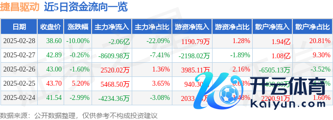 本站音讯,划定2025年2月28日收盘,捷昌启动(603583)报收于38.6元,下落10.0%,跌停,换手率6.12%,成交量23.38万手,成交额9.31亿元。