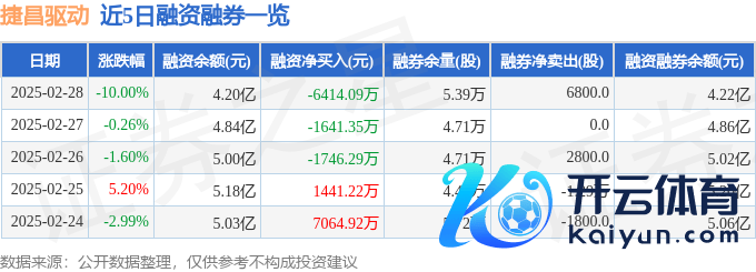 捷昌启动融资融券信息显现,融资方面,当日融资买入7775.62万元,融资偿还1.42亿元,融资净偿还6414.09万元。融券方面,融券卖出1.33万股,融券偿还6500.0股,融券余量5.39万股,融券余额208.05万元。融资融券余额4.22亿元。