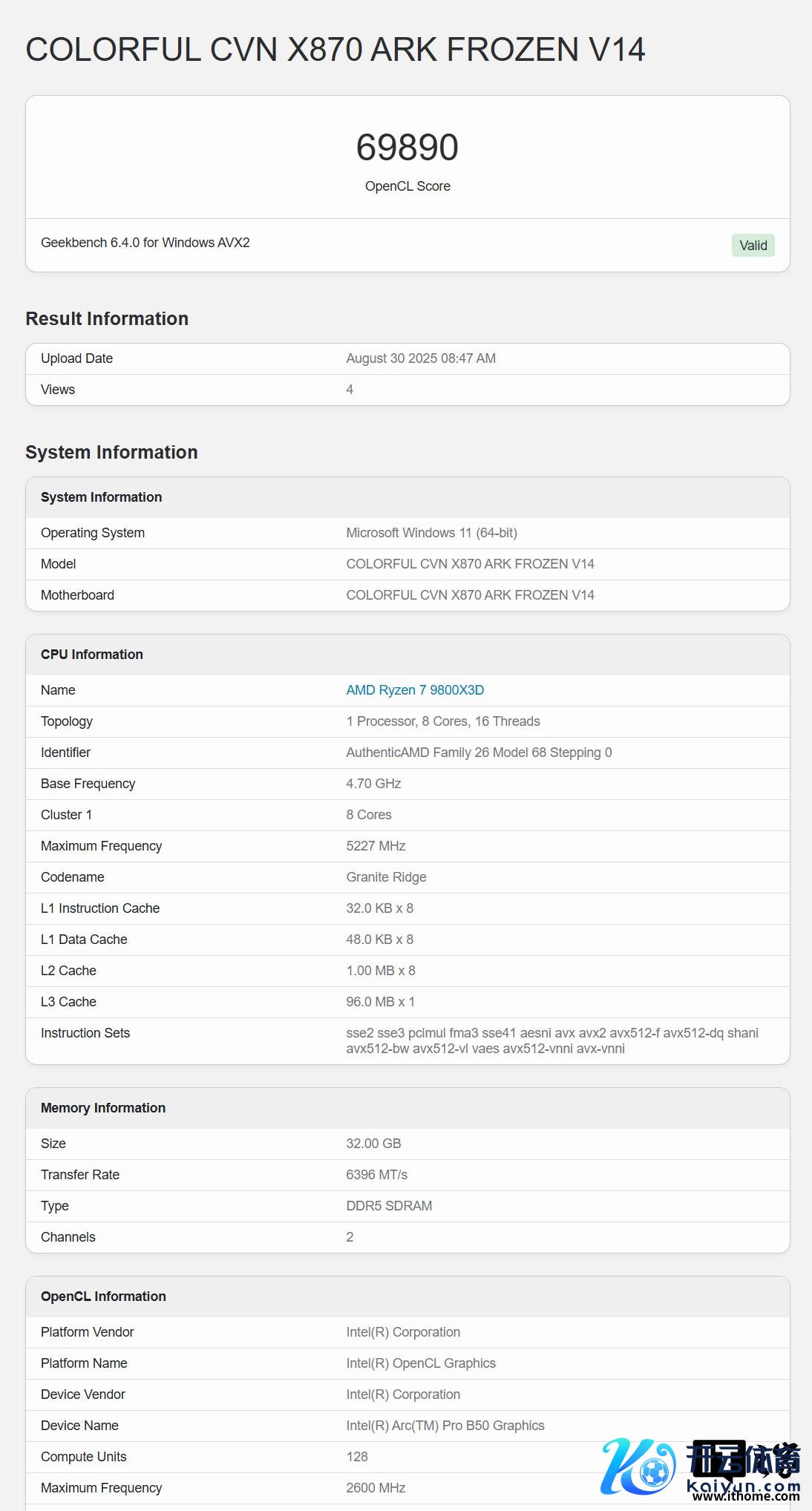 IT之家 8 月 30 日音讯,英特尔初学级责任站显卡 Arc Pro B50 初次出目下 Geekbench 中,并进行了 Vulkan 和 OpenCL 测试,跑分收成较 Arc B570 略低。