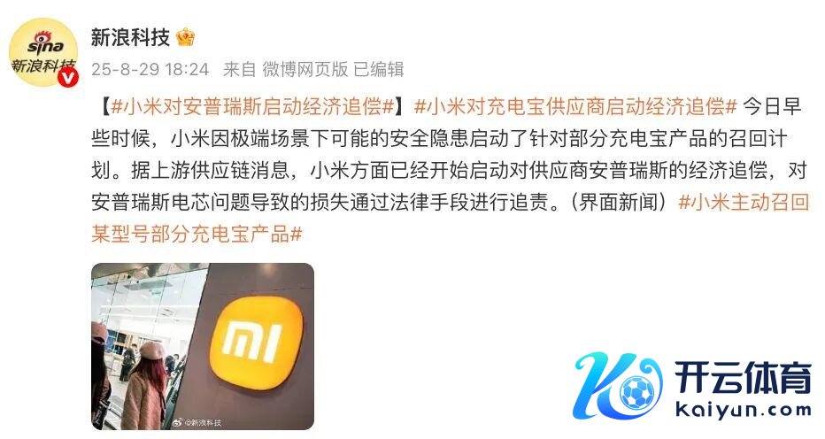本日早些时候,小米因顶点场景下可能的安全隐患启动了针对部分充电宝家具的调回野心。据上游供应链音信,小米方面也曾启动启动对供应商安普瑞斯的经济追偿,对安普瑞斯电芯问题导致的耗损通过法律技艺进行追责。
