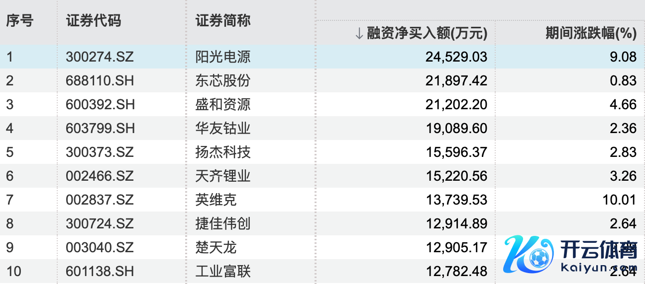 杠杆资金重仓股曝光 阳光电源居首