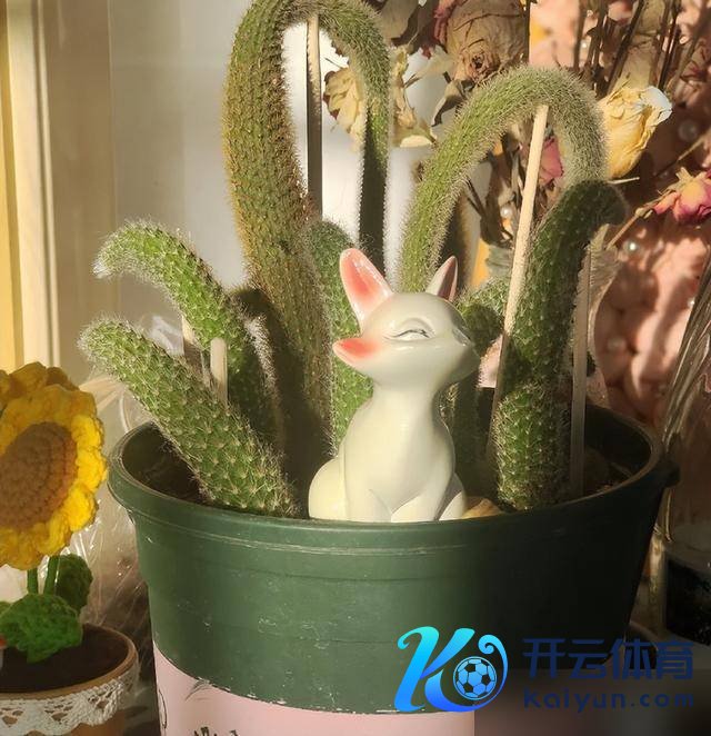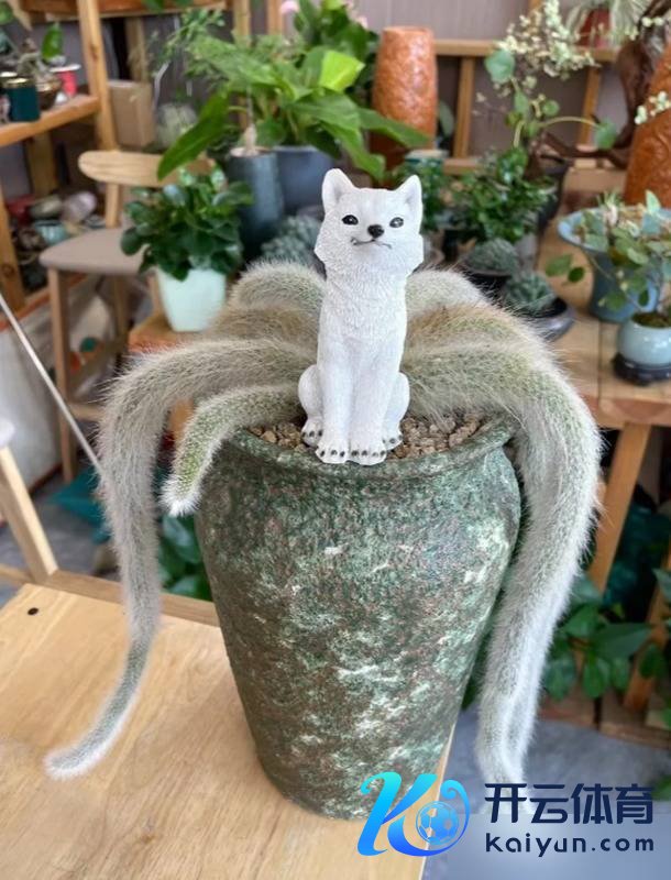 矮墩墩的陶盆比高桶盆更出效能,高盆让尾巴往下坠,矮盆一换枝条当然往上卷曲,添个小狐狸摆件,仙味儿径直翻倍儿。