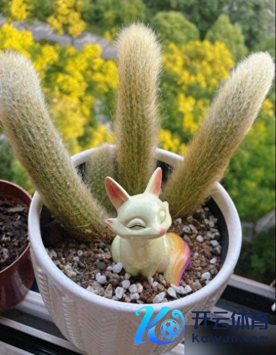 那盆毛茸茸的九尾狐摆在窗边,尾巴尖儿随风轻轻晃悠,阳光一照,整间房子皆透着一股子仙气。