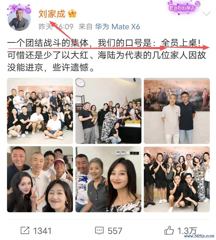 导演刘家成在微博发布《生万物》剧组庆功宴合照,并配文“一个团体搏斗的集体,咱们的标语是全员上桌!”。