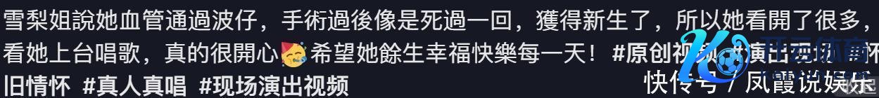 至于雪梨,状态并不是很好的她照旧有多年没拍戏了,友东说念主还表现称雪梨这几年体魄景色并不是很好,作念过通波仔手术(学名为冠状动脉膨大及支架植入术),雪梨本东说念主暗示手术事后的她嗅觉就像死过一趟,得到更生了,是以,当前的她看开了好多。