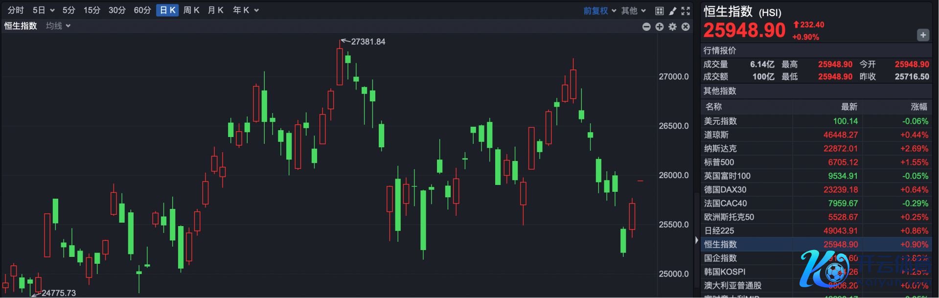 戒指发稿,恒生指数报25948.90点,高潮232.40点,涨幅0.90%。