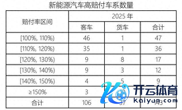 2025年赔付率超过100%(尚未讨论财险公司渊博预计贬责用度资本)的高赔付车系有143个,较上年加多6个开yun体育网,其中客车106个、货车37个。高赔付率车系举座情况见下表: