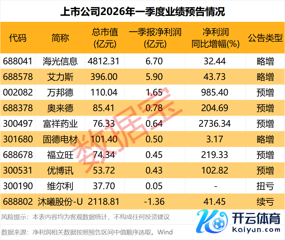 上市公司首批一季报预报出炉 大大皆功绩预增